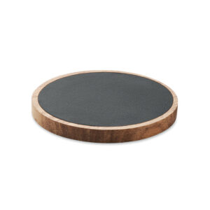Wireless charger in acacia wood and recycled PU, which is 58% recycled (40% recycled polyester and 18% recycled PU). Output: DC 9V/1.67A (15W).