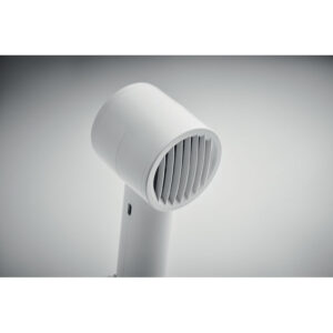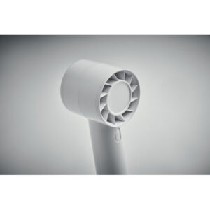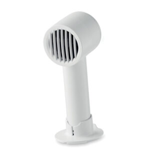 Small portable fan with additional desk stand with phone stand option. 3 speed settings. USB port rechargeable battery 2000 mAh.