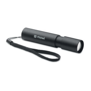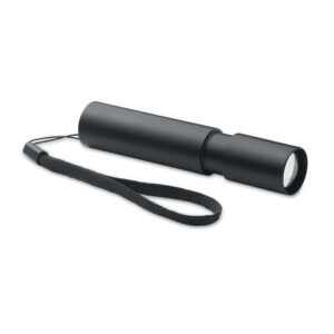Aluminium rechargeable torch 110 lumen with 3 light settings and zoom in/out functionality. Built-in 400 mAh rechargeable battery and charging cable included.