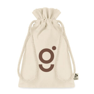 Small gift draw cord in organic cotton. Size approx. 14×22 cm. 105 gr/m². Present a gift in style with this natural gift bag. Receiving a beautiful packaged gift is half the fun!