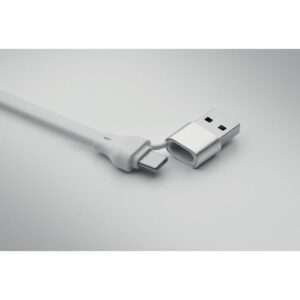 60W cable in recycled ABS casing with keyring and phone stand. Input: 2-in-1 Type-C and Type-A. Output: Type-C and micro-B (2 in 1 pin). Cable length: 26 cm.
