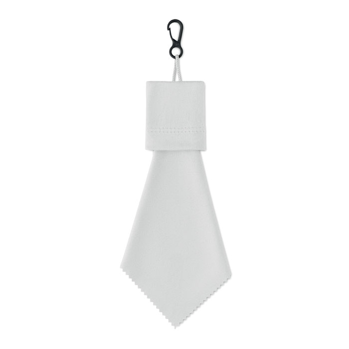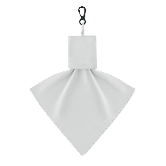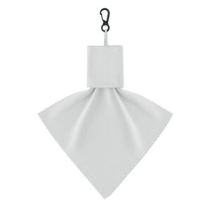 RPET cleaning cloth with self material pouch with PP plastic hanging hook.