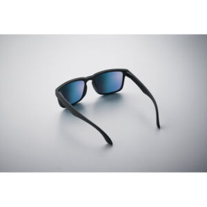 Festival sunglasses with mirrored lenses and matt rubberized frame. UV400 protection.