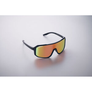 Sports sunglasses with mirrored lenses and colour frame. UV400 protection.