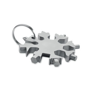 Multi-tool 17-in-1 stainless steel snowflake shaped. Optional metal ring included.
