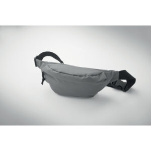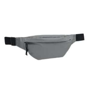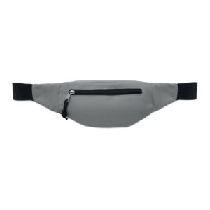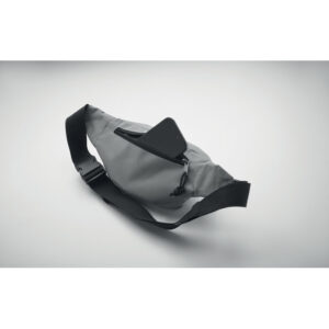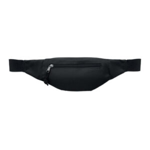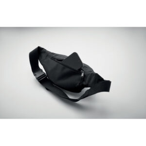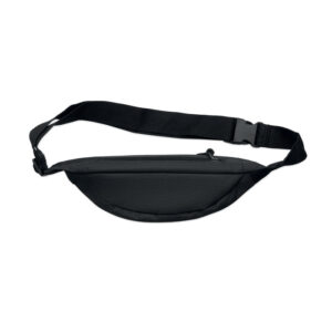 Waist bag in 600D RPET polyester with zippered main compartment and hidden zippered back compartment.