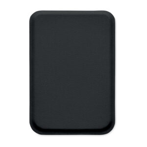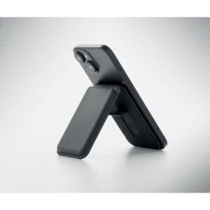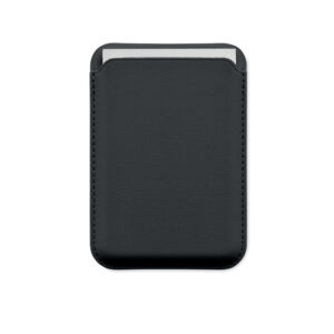 Magnetic PU leather credit card holder (for 3 cards) with stand functionality. It includes an additional metal ring.