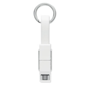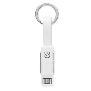 Key ring with 4-in-1 charging cable. In/Output: Type-C x2, Type-A, Micro USB.