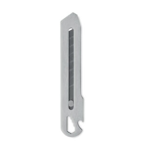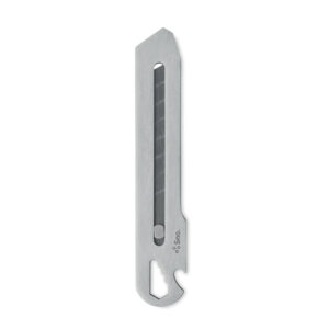 Stainless steel retractable knife with 8 carbon steel blades, bottle opener, wrench and ruler.