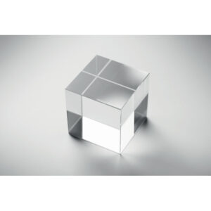 Glass cube award or trophy. Presented in a gift box.
