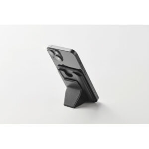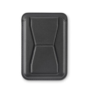 PU leather phone cardholder (for 2 cards) with stand function and magnetic closure. Compatible with iPhone® 12 and newer. Including magnetic metal ring to support charging of other non-magnetic wireless chargeable phones.