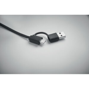 60W retractable cable in recycled ABS casing. Input: 2-in-1 Type-C and Type-A. Output: Type-C and micro-B (2 in 1 pin). Cable length: 80 cm.