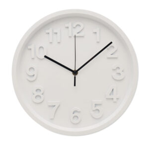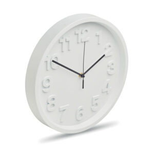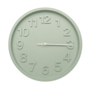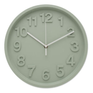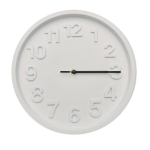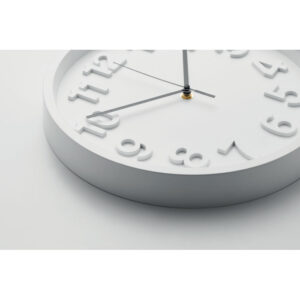 Wall clock in PP with aluminium hands and silent movement. Requires 1 AA battery (not included).