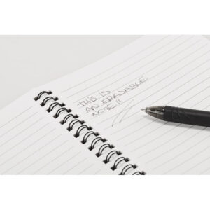 A5 Reusable notebook in PP cover. 36 lined mineral paper pages (18 sheets). Compatible with any document scanning app. Including water- erasable pen and cleaning cloth.