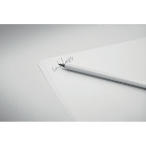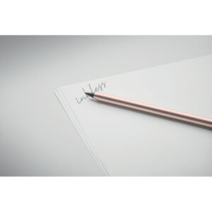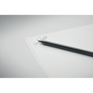 Long lasting recycled aluminium inkless pen. The pen writes with the graphite tip that has a plastic protection cover.