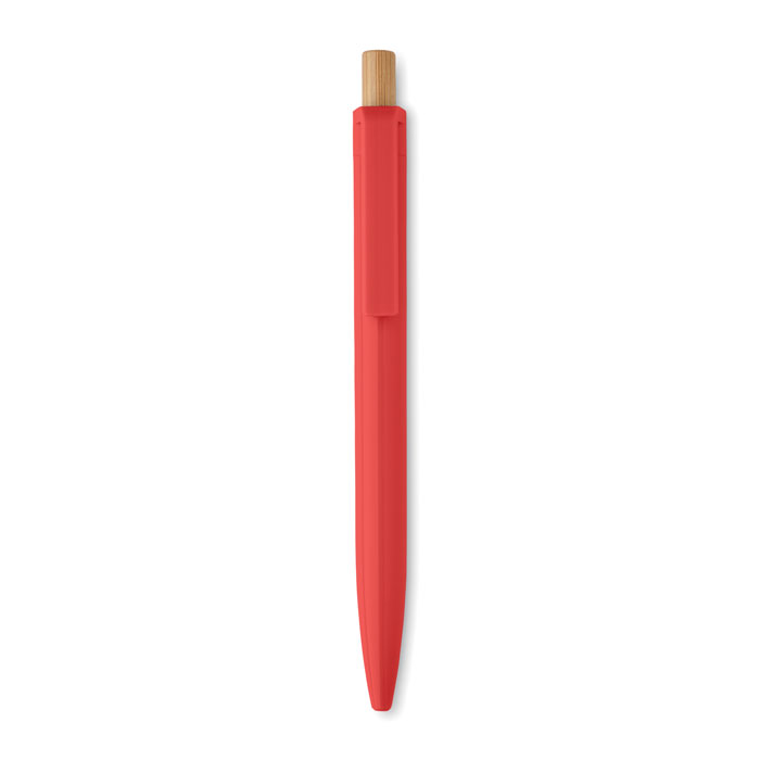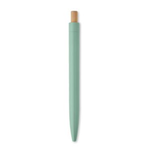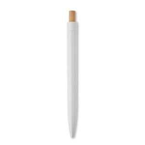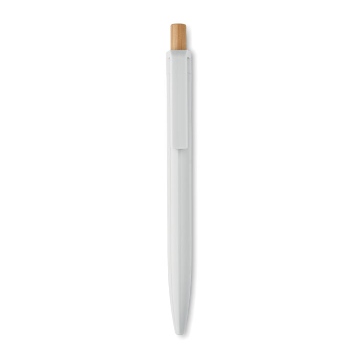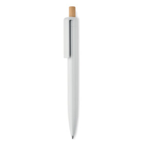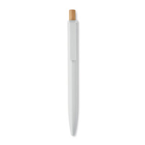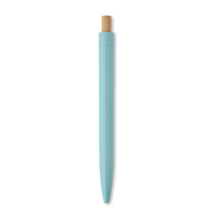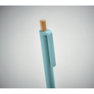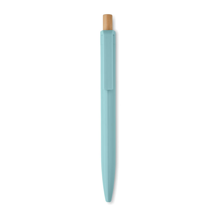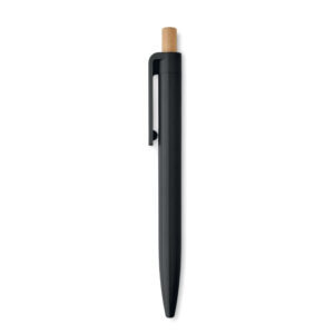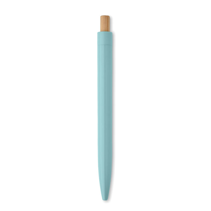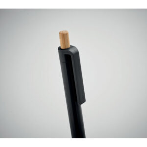 Ball pen in recycled ABS with bamboo push button. Blue ink.