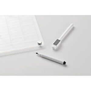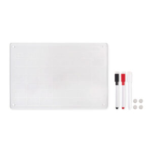 Magnetic acrylic monthly planner in A4 size with 3 erasable magnetic markers (black, red and white). Includes screws for mounting.