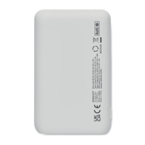 Powerbank PD 20W. 5000 mAh. Recycled ABS (GRS). Outputs: USB-C up to 20W and 2 USB-A up to 18W. Input: USB-C and Micro-B 18W. 4 LED indicators. USB-C to USB-C cable (2A) with USB-A adapter included.