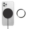 3 in 1 charging station in ABS. Includes 15W magnetic wireless charger for phone and TWS with phone holder functionality and smartwatch charger (iOS only). Magnetic feature compatible with iPhone® 12 and newer. Including additional magnetic metal ring to support charging of other non-magnetic wireless chargeable phones.