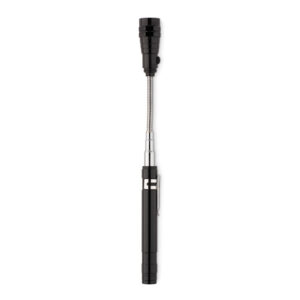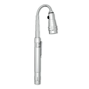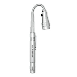 Extendable aluminium torch with 3 LED light and magnet on top and clip on side. 4 Batteries LR44 included. Maximum length 57 cm.