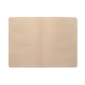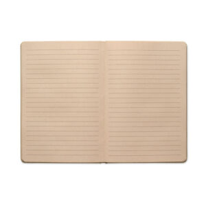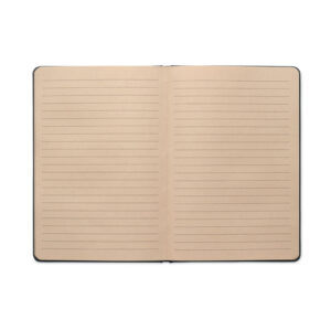 A5 notebook with hard cover and 160 lined paper pages (80 sheets) in PLA sugarcane (65% Sugarcane fibre/35% paper). Casebound.