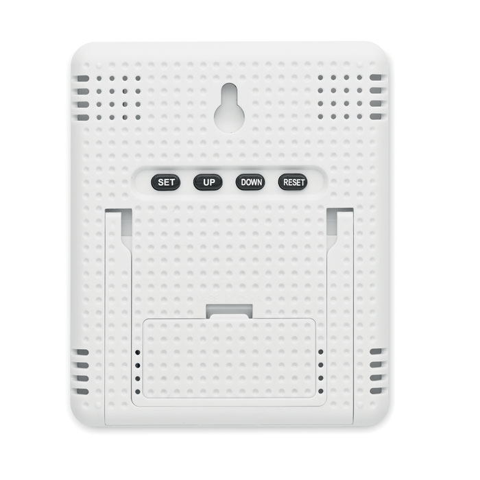 Weather station with bamboo front, multi-functional thermometer. Includes a clock, temperature, humidity display and calendar. 2 AAA battery not included. Keep track of the current temperature, humidity and time with this natural looking weather station and clock combination. The bamboo casing gives it a natural look, making it a great decoration at home or at the office. Bamboo is a natural product, there may be slight variations in colour and size per item, which can affect the final decoration outcome.
