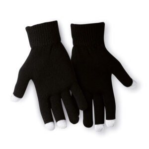 Tactile gloves for smartphone in acrylic. The 3 tactile extremities of the fingers are composed of 0.5% in stainless steel fibre, 89.5% in acrylic, 10% in spandex.