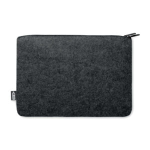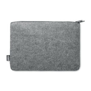 RPET felt 14 inch zippered laptop bag with zippered front pocket. Take your laptop or tablet with you in this protective sleeve. The front pocket makes it easy to store smaller items such as pens or notes, making it ideal for use at the office. The bag is made from recycled PET plastic.