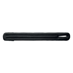 Bendable travel pillow made of soft polyester and foam. Includes RPET drawcord pouch for easy storage. Comfortable and compact for travel.