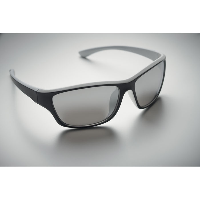 Sports sunglasses with mirrored lenses. UV400 protection.